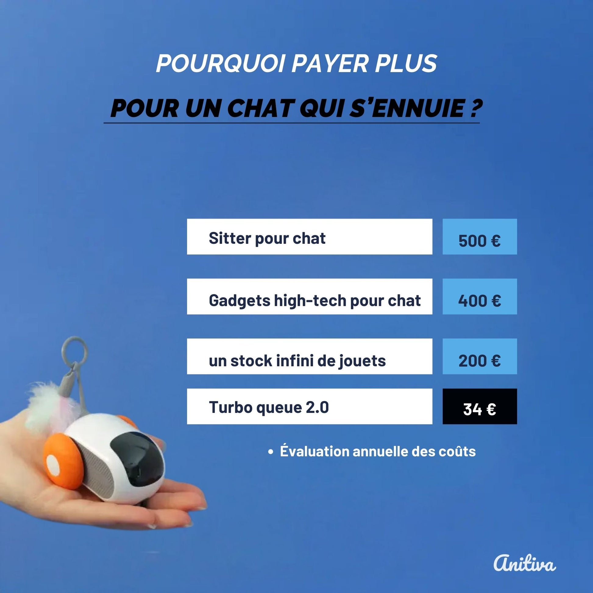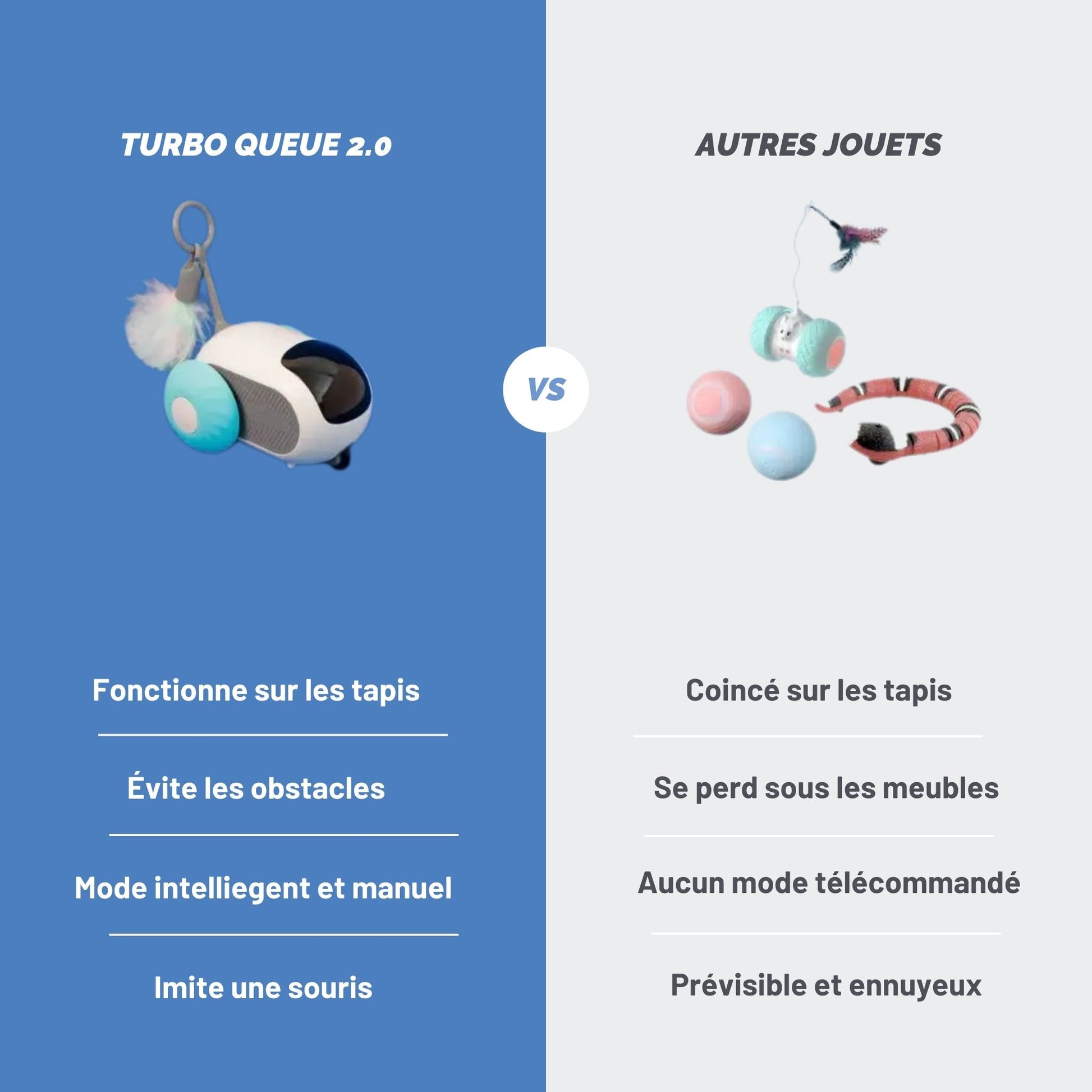 Les jouets classiques sont prévisibles et ennuyeux. Le Turbo Queue 2.0, lui, est interactif, réactif au toucher et télécommandé. Il évite les obstacles et fonctionne sur toutes les surfaces.